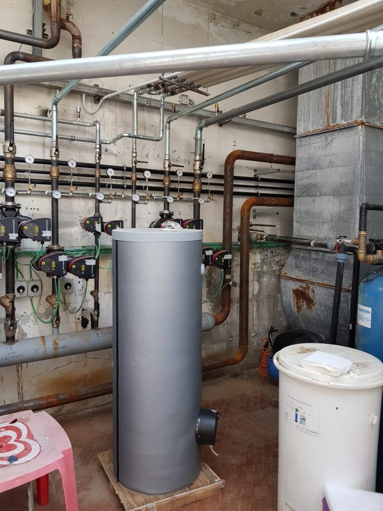 - Rifacimento completo della centrale termica, con installazione di nuova caldaia a condensazione con bruciatori modulari;