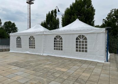 - Realizzazione nuovo corpo di fabbrica adibito a bar, con accesso dalla tribuna interna e dal parcheggio esterno, con area esterna attrezzata con tavoli e pergolato.